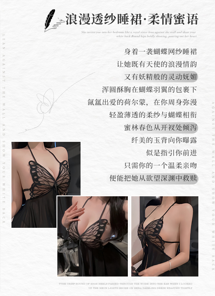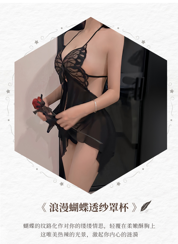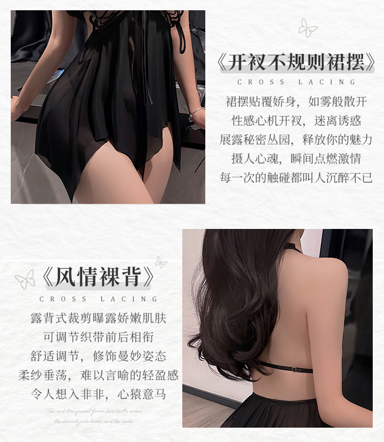 蜜恪欧美情趣网纱吊带蝴蝶结透视睡裙包臀裙系带装夜店激情装8652