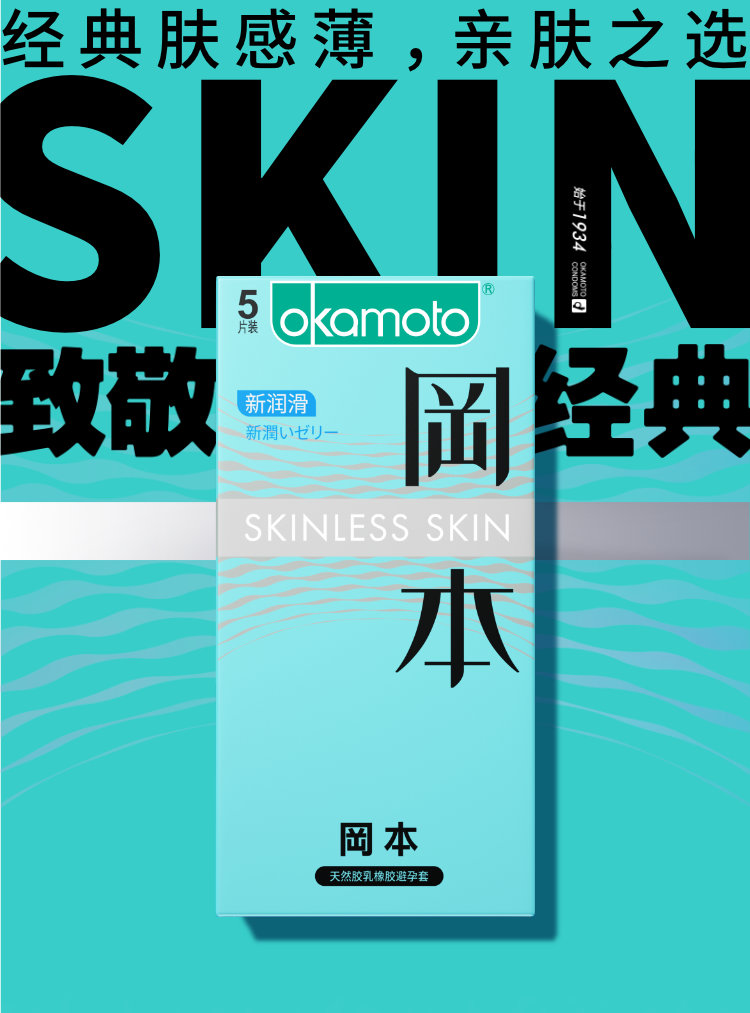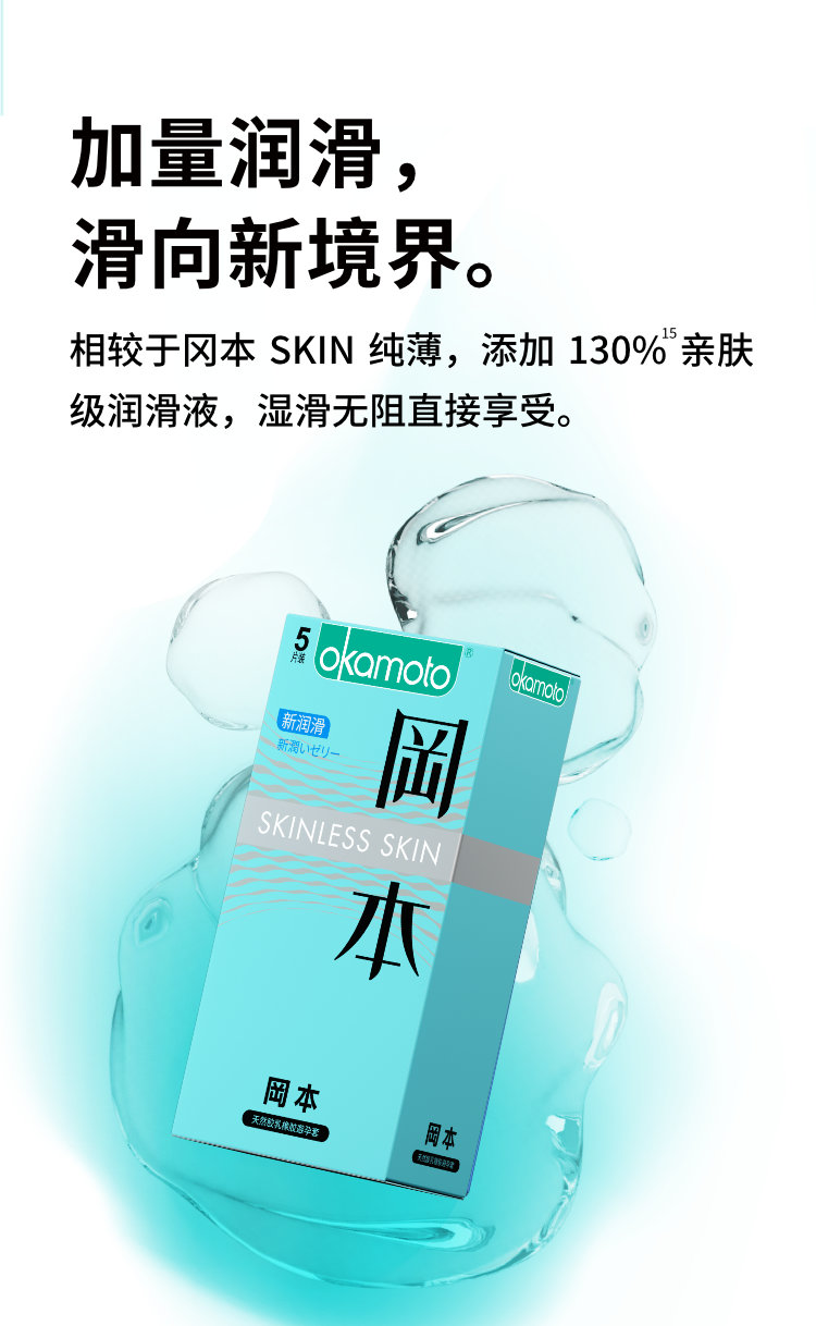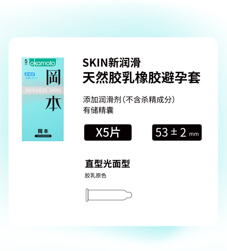 冈本避孕套超薄裸入安全套新润滑5只装男用正品超润滑计生用品规格:144盒/箱
