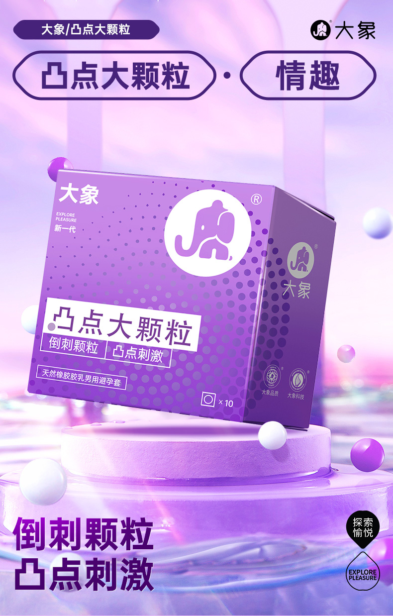 大象避孕套10只装凸点大颗粒夫妻房事酒店供套成人用品一件代发规格:240盒/箱