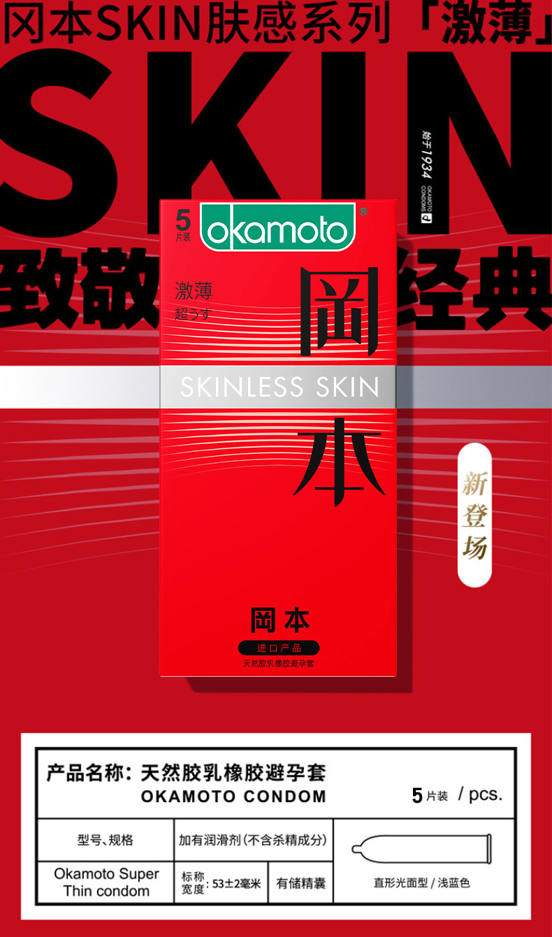 冈本激薄5只装大盒套避孕套超滑SKIN安全套成人用品一件代发批发规格:144盒/箱