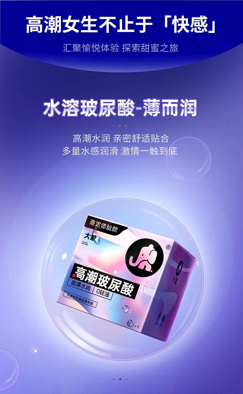 大象高潮玻尿酸7只装避孕套超薄水润安全套男用情趣计生用品批发规格:240盒/箱