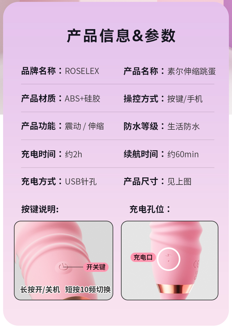 ROSELEX劳乐斯素尔伸缩跳蛋小程序新款强振入体自慰调情情侣互动规格:82个/箱