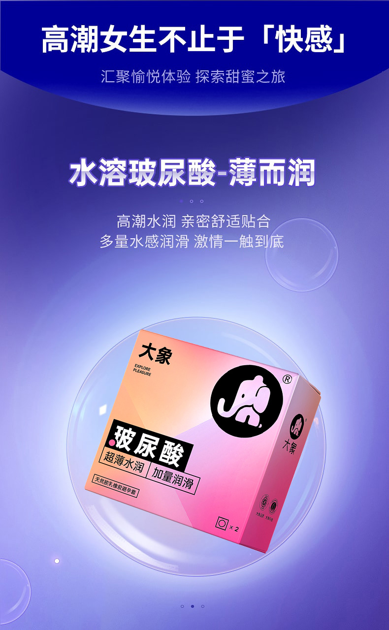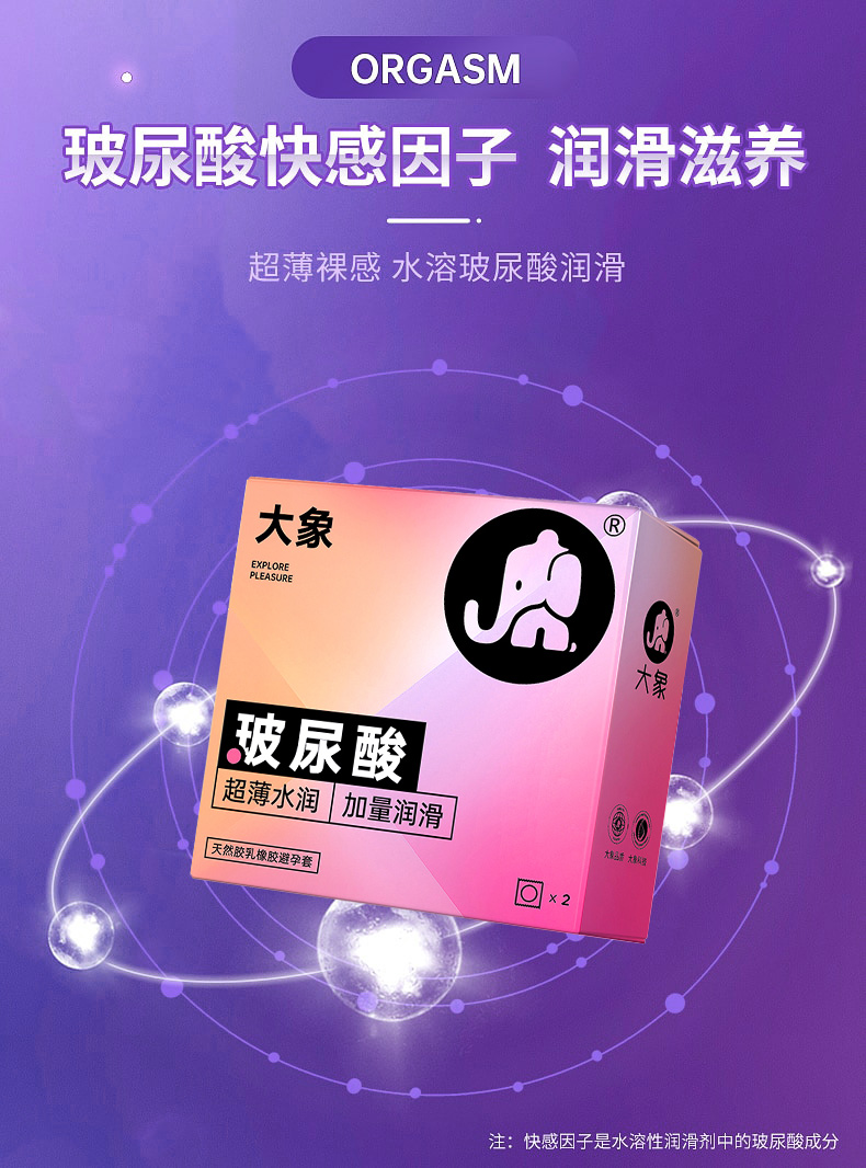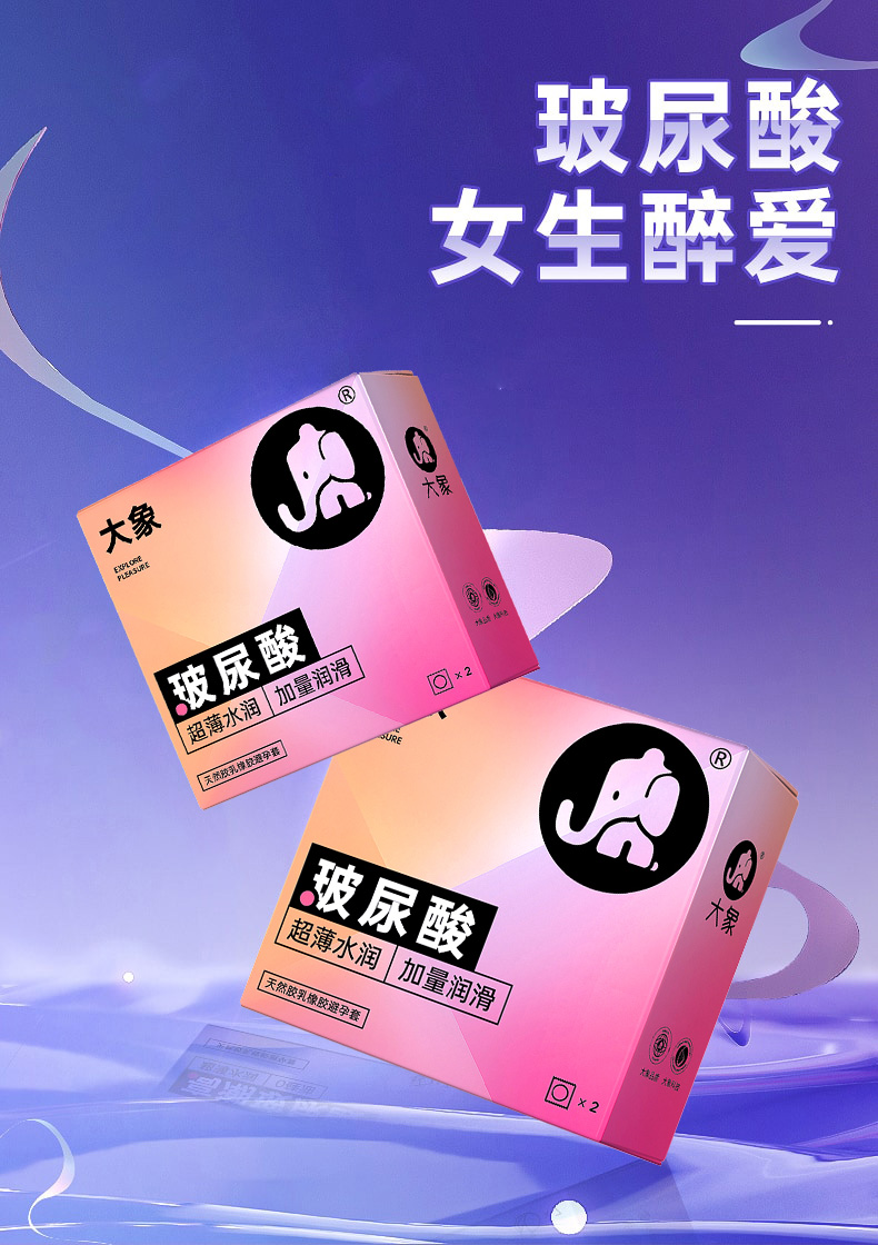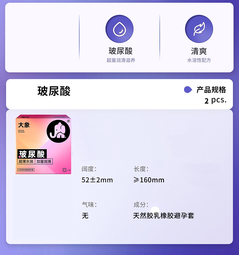 大象避孕套高潮玻尿酸2只装0硅油水润超薄成人计生用品批发代发